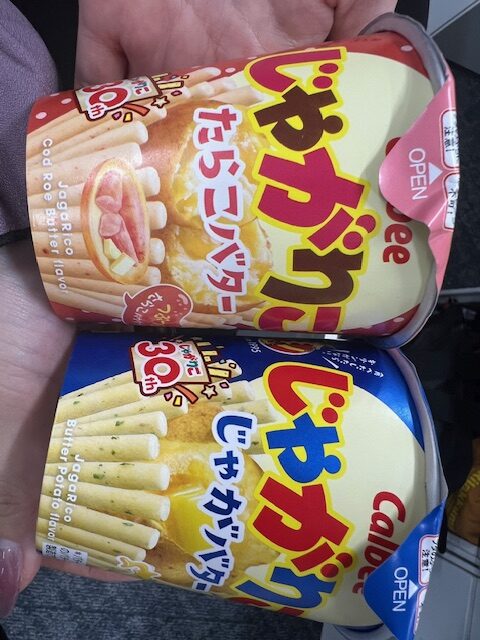 知人が持っていた『じゃがりこ たらこバターとじゃがバター』を見せてもらったところ、このとおり!バーコードが可愛くデザインされていました。